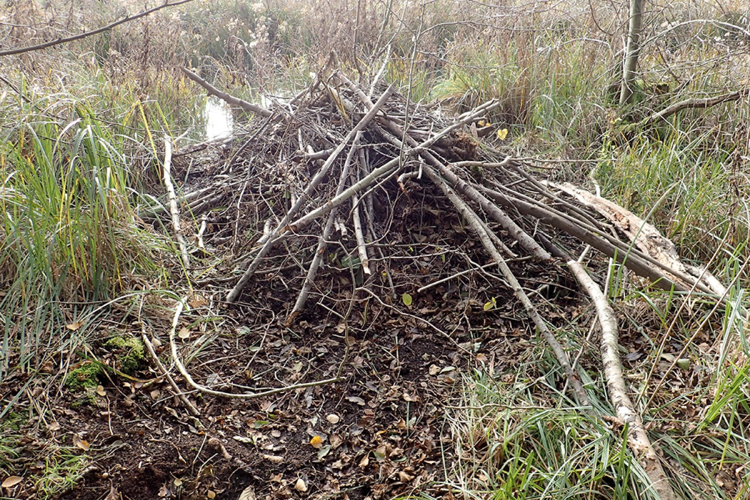 A beaver kit at Sculthorpe (above). Fully grown, these semi‑aquatic mammals can exceed a metre in length and weigh up to 30kg, powered by webbed hind feet and iron‑infused teeth. Known for their engineering skills, beavers build dome‑shaped lodges from sticks and mud to provide secure shelter throughout the seasons (below).