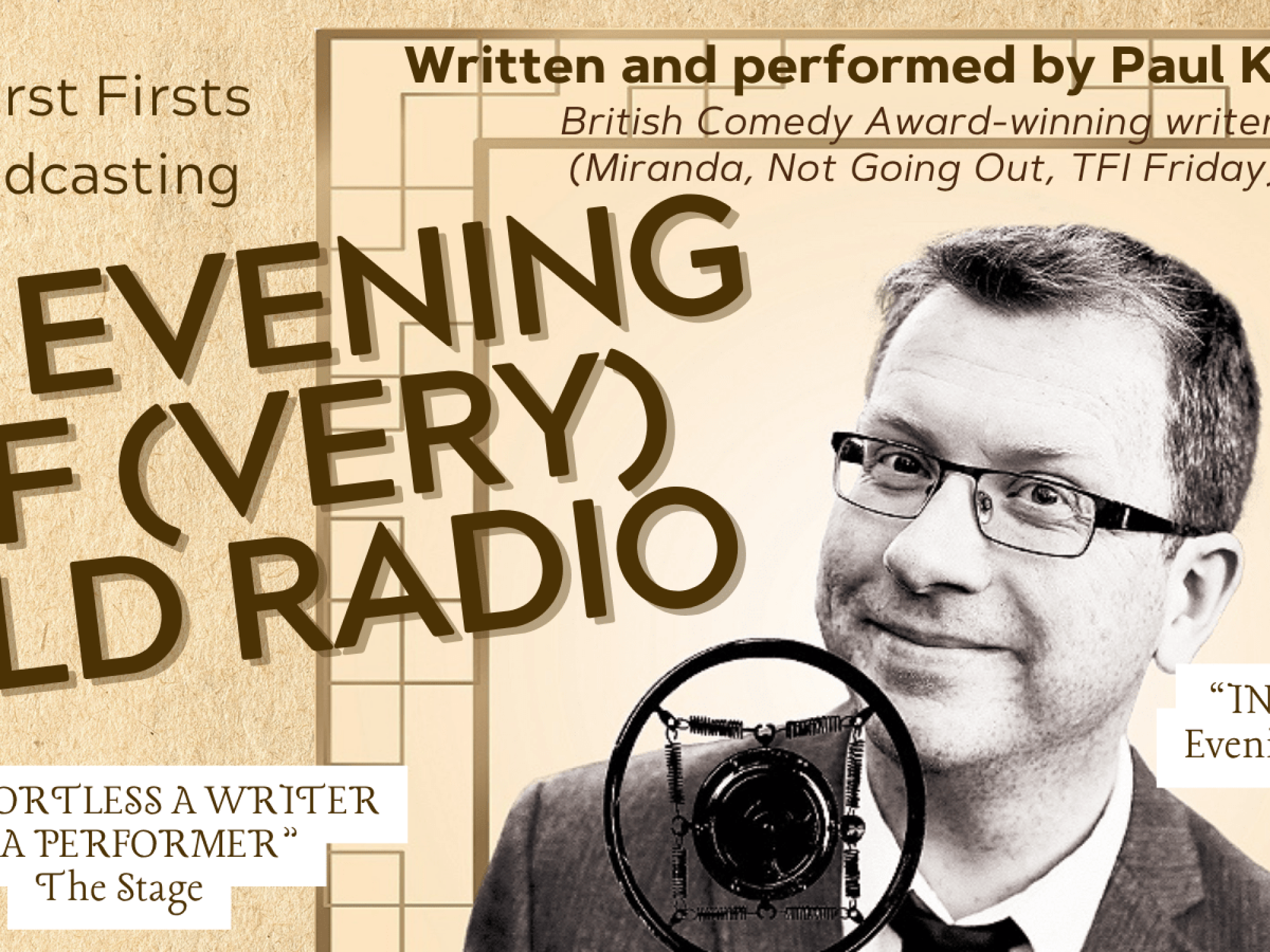 Written and performed by comedian and British Comedy Award-winning writer Paul Kerensa (Miranda, Not Going Out, Top Gear), this one-man show informs, entertains, and brings the BBC’s early years to life.
