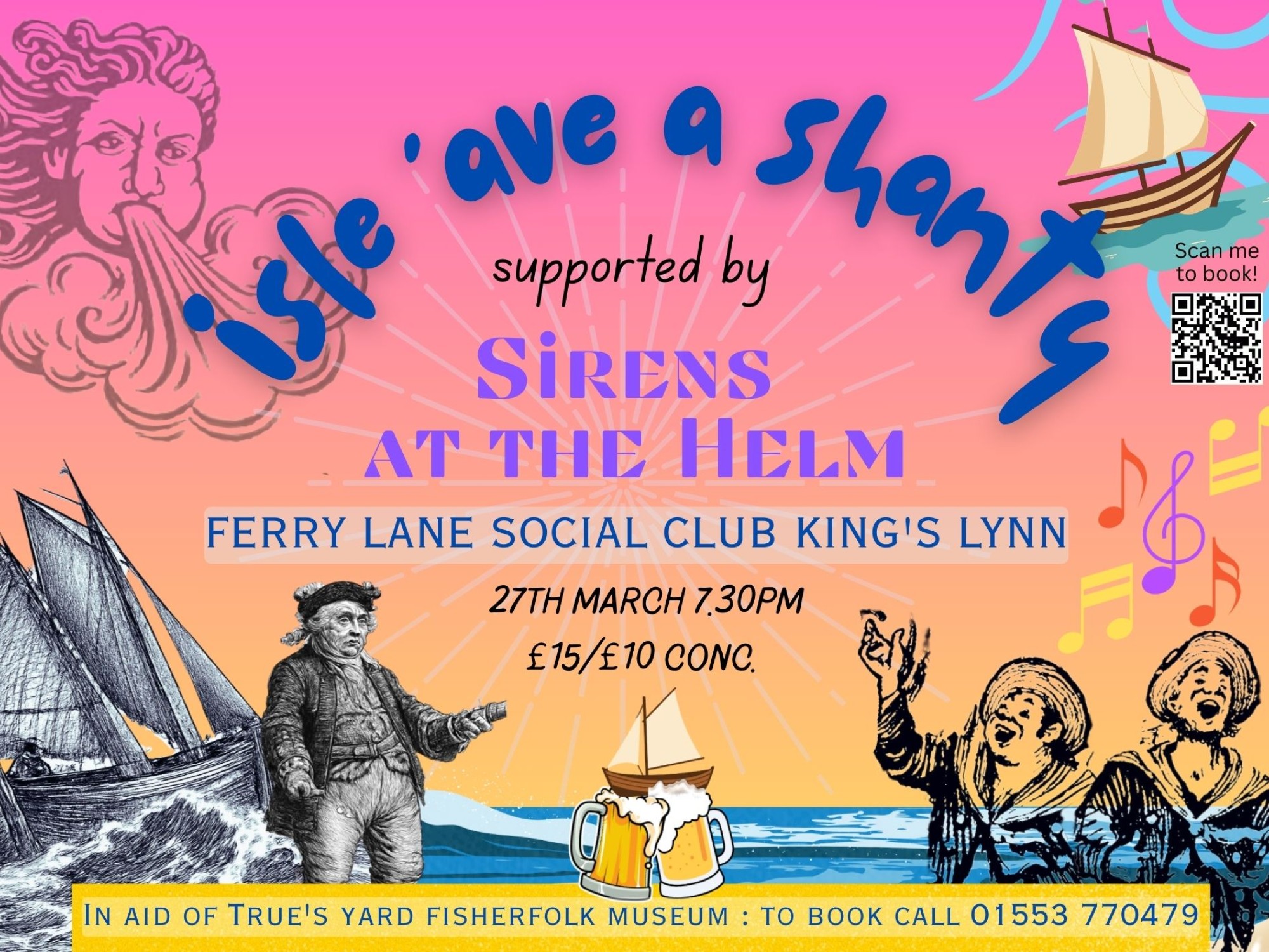 Come along for a fabulous evening of entertainment with sea shanties galore performed by Isle ‘Ave a Shanty supported by Sirens at the Helm. The show will also feature a debut performance of ‘Northenders’, a song specially written for the event by the talented Mr. Stuart Green as a tribute to the lost fisherfolk community of King’s Lynn.